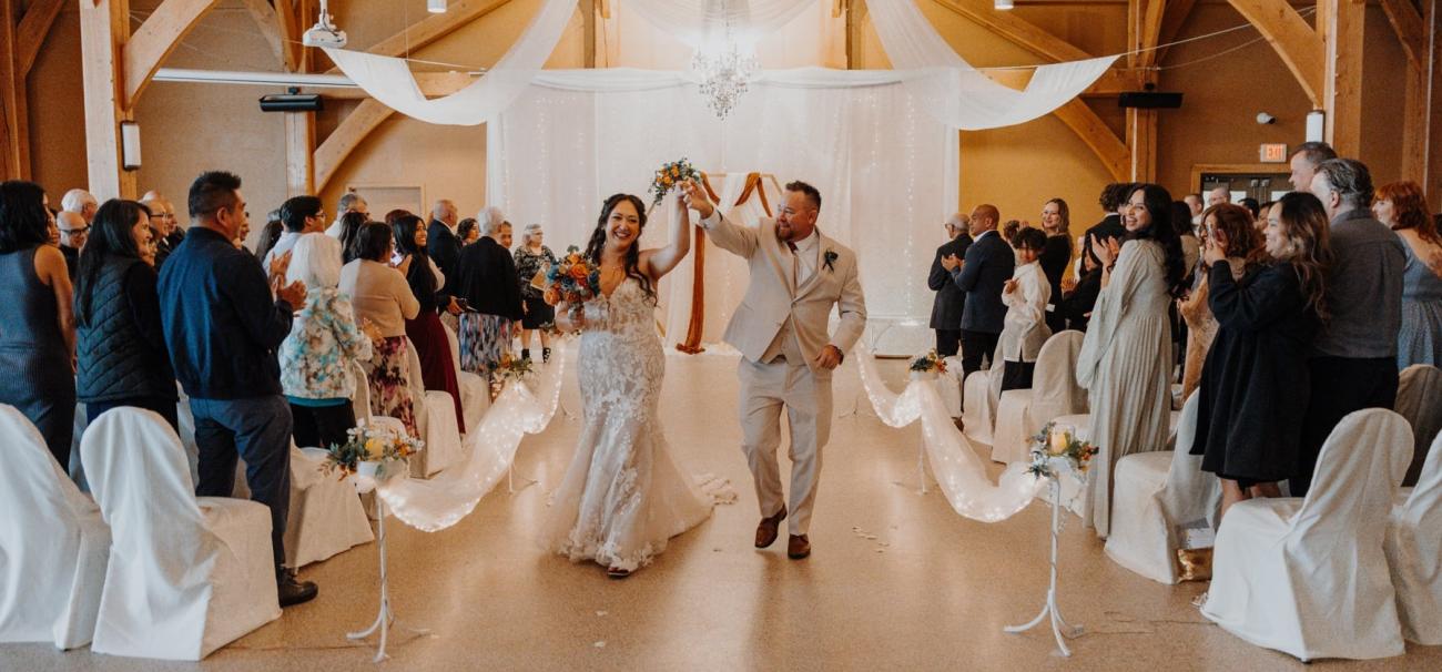 Perhaps part of the facility’s allure is the fact that the event centre offers a variety of settings: a banquet hall holding 350 guests or a timberframe atrium that holds around 130. Because they are connected, the centre can cater to larger events by utilizing both spaces at once.