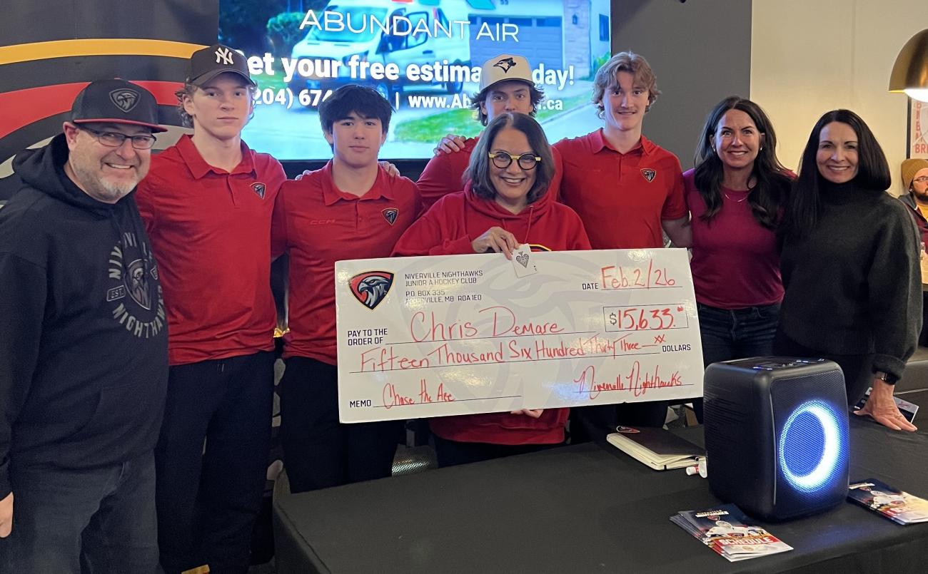 For the third time, the Niverville Nighthawks cut a grand prize cheque to a lucky Chase the Ace winner.